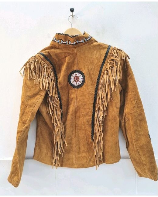 Embrace the spirit of the wild west with this stunning leather jacket from Western Oufits. The beaded and bone accents give the jacket a unique Navajo style, perfect for travel, parties, and formal occasions.