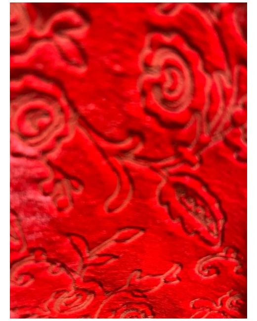 This embossed red suede jacket is really stunning. That's why I bought it, but it has hung in my wardrobe ever since as I'm (sadly) not a stunning dresser. Fully lined. Length from collar - back 49cm, front 52cm.