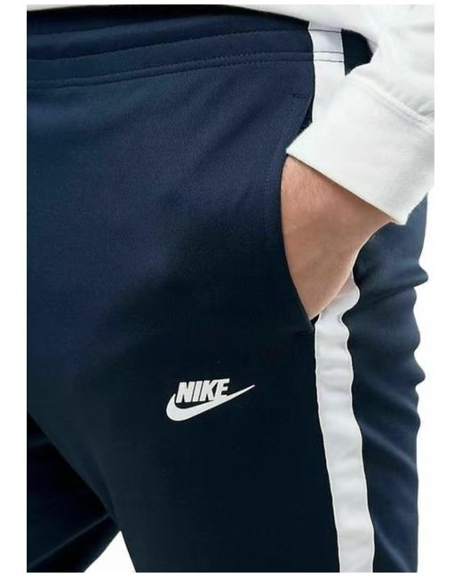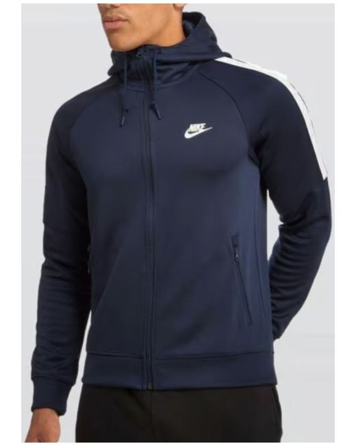 A new with tags Nike tracksuit for men in size M. The set includes a zip blue fleece hoodie and track pants, both made of polyester. The style is jogger, suitable for activewear occasions. Perfect for those looking for a comfortable and stylish outfit for sports or leisure activities.