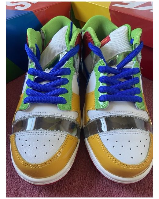 Elevate your sneaker game with these multicoloured Nike Dunk Low trainers. Designed with a low top shaft style and made with high-quality materials, these trainers are perfect for all-day wear. The Nike Dunk Low is a timeless classic that never goes out of style, and with the Sandy Bodecker edition, you can add a unique touch to your collection. 2 pairs available. From the Nike Dunk product line, these trainers are perfect for those who love to stand out. These are UK shoe size of 7.5, and with the release year being 2022, they are guaranteed to be the latest trend. Get your hands on this Nike Dunk Low model and enjoy the comfort and style that it has to offer.