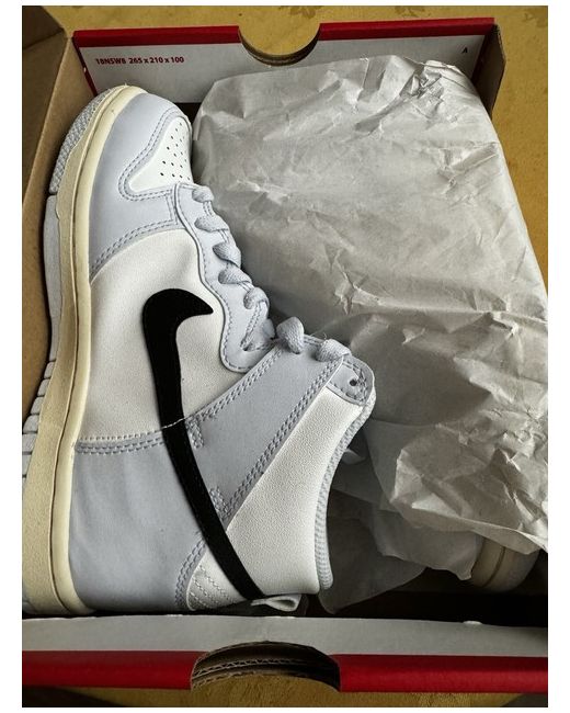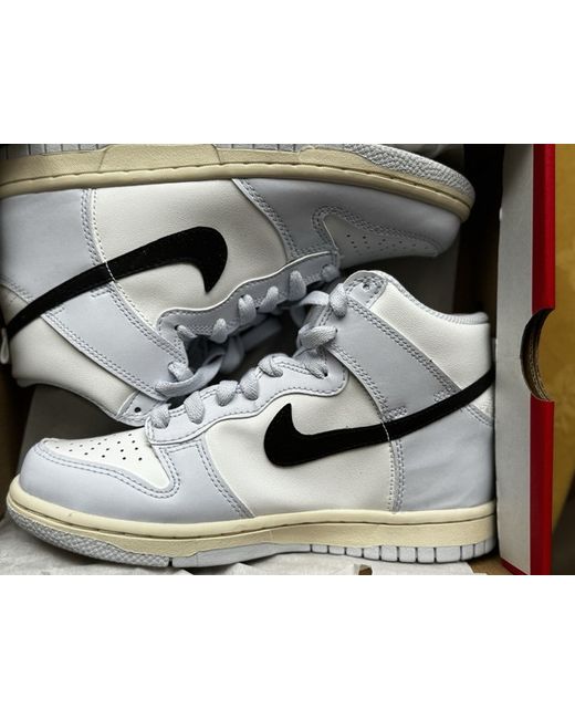 Exclusive Nike dunk high sold out everywhere or high price cheapest price you will find online Elevate your sneaker game with these Nike Dunk High trainers. Featuring a retro-inspired design, these sneakers are crafted from bullhide leather in a summit white and football grey colourway. The shoes are designed with a UK shoe size of 4 and are perfect for men who love to stay stylish and comfortable. These Nike trainers are ideal for everyday wear and are perfect for any casual occasion. The shoes are branded with the Nike logo and feature a sleek and trendy design that is sure to turn heads. Don't miss out on the chance to own a pair of these high-quality sneakers.