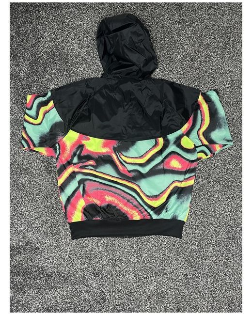 This Nike Windrunner jacket in multicoloured design is a must-have for any fashion-savvy man this summer. Made with high-quality polyester material, this jacket is perfect for any outdoor activity, whether you are hitting the gym or just taking a walk in the park. The jacket is a size small and features the signature Nike Windrunner product line, making it a stylish and practical addition to any wardrobe. The jacket is perfect for activewear and is ideal for any occasion, from a casual day out to an intense workout session. The colour is vibrant and eye-catching, adding a touch of style to any outfit. Whether you are a Nike fan or simply looking for a high-quality, durable jacket, this Windrunner is the perfect choice.