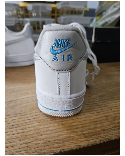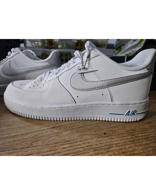 white air force 1 with silver and blue size 10. Condition is New with box. Dispatched with Evri Tracked.