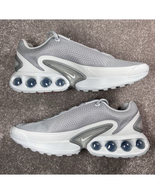 BOX LID MISSING The product is a pair of Nike Air Max trainers in grey, specifically the Nike Max Air model, designed for men in a UK size 9. These sneakers, part of the Nike Air Max product line, are ideal for casual wear and offer comfort and style with their signature Nike Air technology. With a classic sneaker style, these Nike trainers are a popular choice for those looking for a versatile and trendy footwear option.