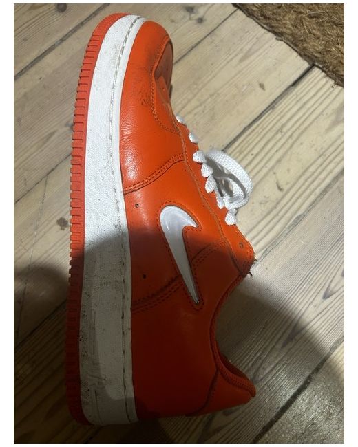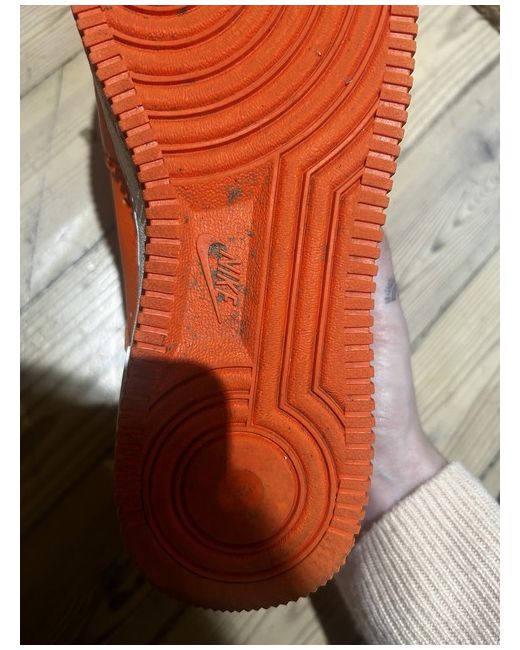 This vibrant orange Air Force 1 trainer is the perfect addition to any sneaker collection. With a UK shoe size of 7.5, it's suitable for both men and women. The Nike brand ensures quality and durability, making it a reliable choice for everyday wear. The unisex design and sleek sneaker style make it versatile for any occasion. Whether you're hitting the gym or running errands, these trainers are comfortable and stylish. Don't miss out on the chance to own this eye-catching pair of shoes. Brand new. Worn a couple of times, only mud on trainers! Can easily be wiped off. Taking offers. Great Xmas prezzie.