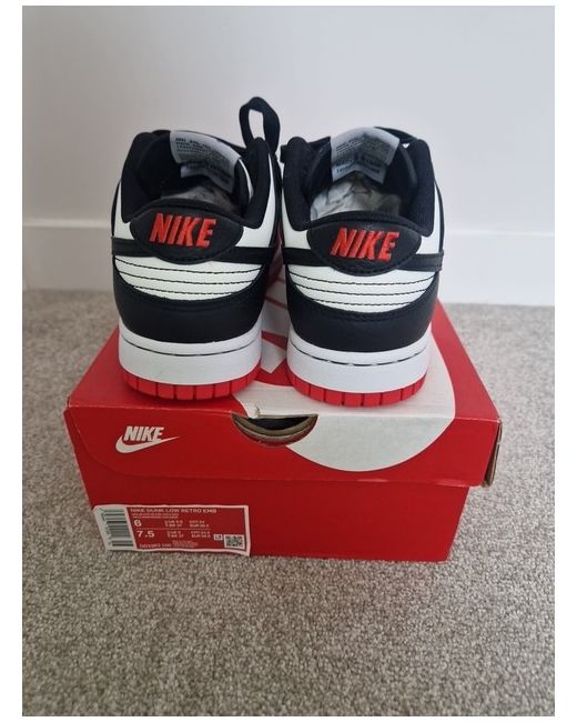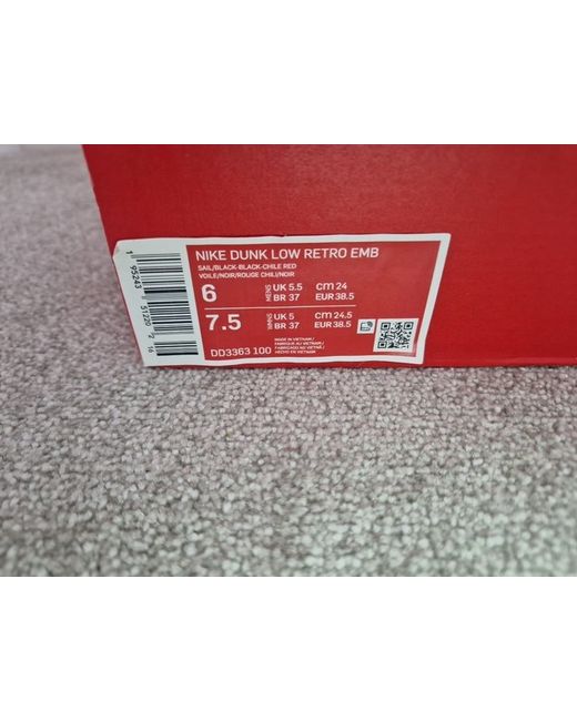 Step up your sneaker game with these stunning Nike Dunk Low Retro EMB trainers. The classic red colourway adds a bold touch to any outfit, while the sleek design ensures comfort and style. Made for men, these trainers are perfect for any casual occasion. The Nike 5 product line guarantees quality and durability, making these sneakers a must-have for any sneaker enthusiast. Complete your look with these stunning Nike Dunk Retro Low trainers.