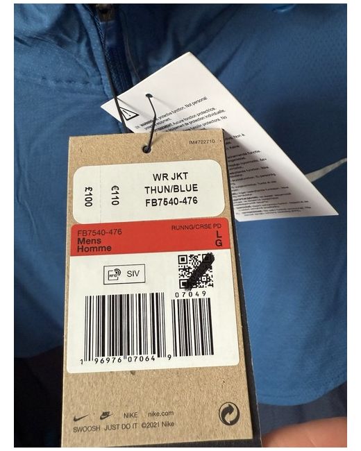 This Nike Pacakable Running Jacket is a men's size L windbreaker in blue. It is perfect for activewear occasions.