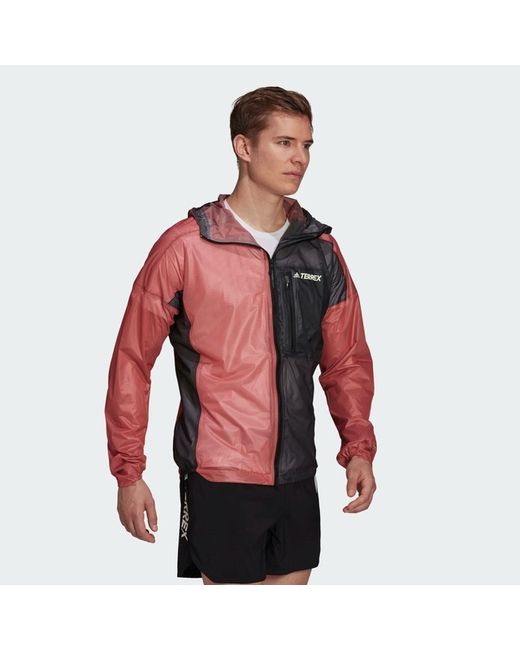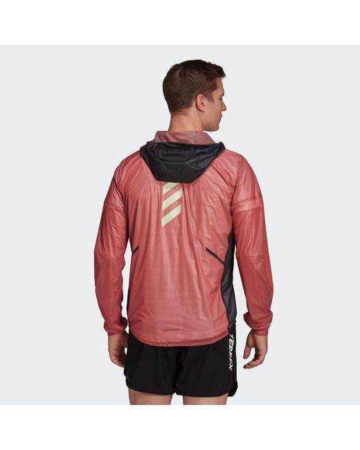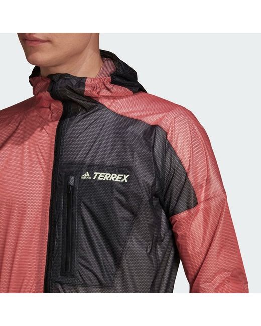 Orange Terrex Agravic 2.5-Layer Rain Jacket JMM16. The lightweight 2.5-layer design includes stretch for a natural range of motion and 360-degree reflectivity for low-light conditions. RAIN.RDY seals out water while letting your body breathe.
