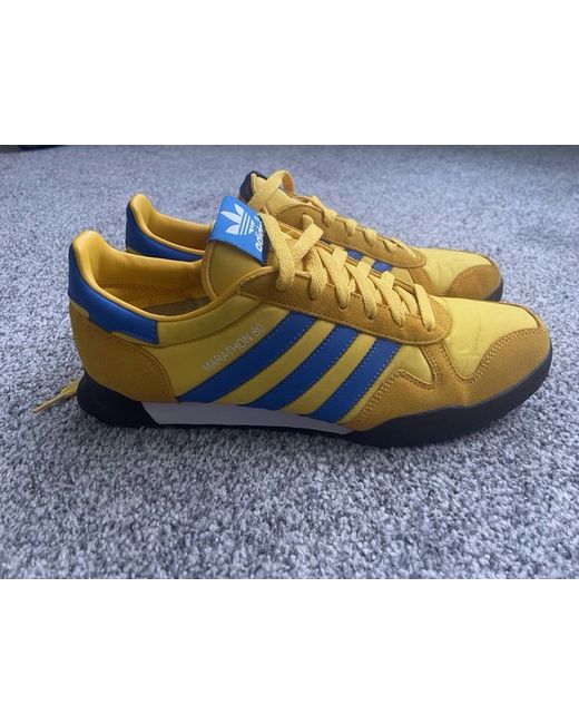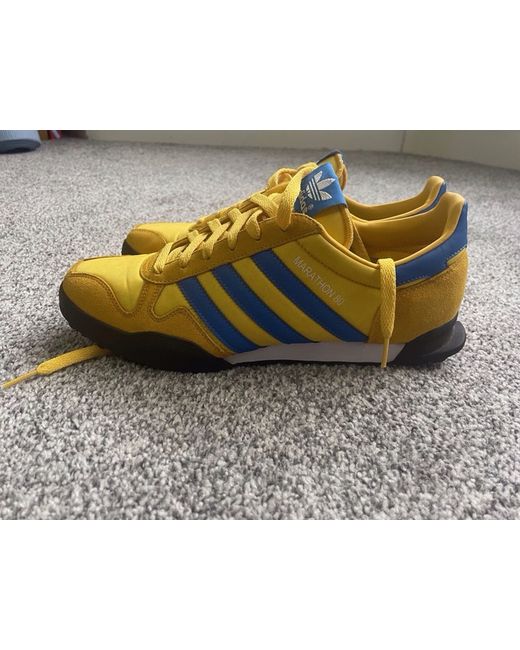 Adidas Marathon 10 trainers in yellow, UK size 9 for men, released in 2009. The model is part of the adidas Marathon TR line, featuring a sporty design and made with upper material suitable for athletic activities. Collection available from Leeds I’m having a clear out of my trainer collection pre house move, these are in mint condition as you can see the bottoms etc have zero signs of wear. I often bought trainers and never wore them!