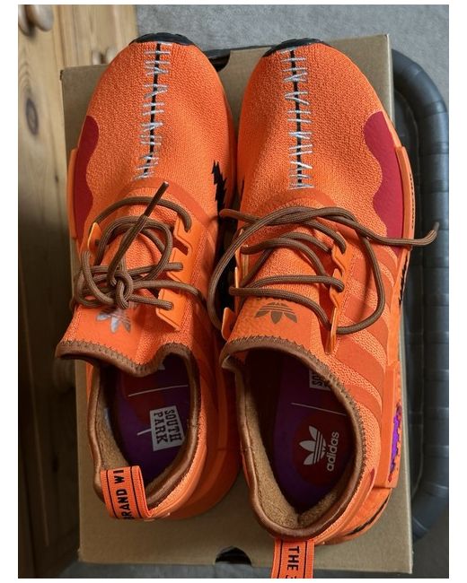 The adidas NMD R1 South Park Kenny sneakers in size 10.5 UK (11 US) are a stylish and unique choice for any fan of the animated series. Featuring the character Kenny in a vibrant orange colourway, these trainers are part of the adidas Park product line and proudly boast the iconic brand logo. Perfect for a casual, everyday look, these sneakers are a must-have for any man looking to add a touch of cartoon flair to their wardrobe. Will come in an Under Armour box which isn’t the original. Only worn once indoors. Any questions, feel free to send me a message.