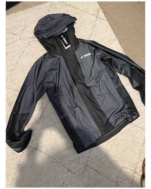 This new adidas TERREX jacket is a black track jacket for men, with a shell outer material. It is designed for various activities such as walking, football, hiking, and running & jogging. The jacket features adidas climaproof technology for protection against various weather conditions. With a size small and a sleek style, it is perfect for outdoor and active wear.