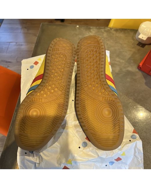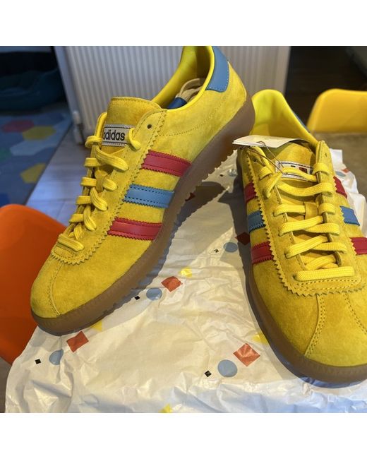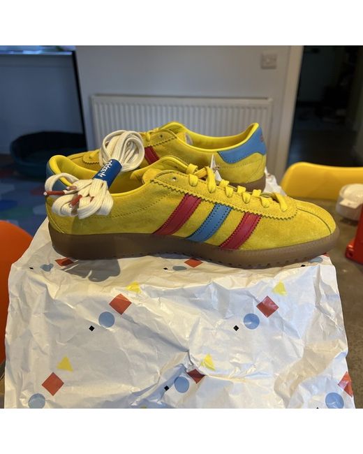 Elevate your shoe game with the Adidas X End Bermuda trainers. These sleek sneakers feature a vibrant yellow colourway and are made with a premium suede upper material. The shoes are designed with a comfortable fit, perfect for the modern man. The Adidas X End Bermuda trainers are a must-have addition to any sneaker collection. With its stylish design and high-quality construction, these shoes are perfect for any occasion. Get your hands on this pair today and step up your style game!