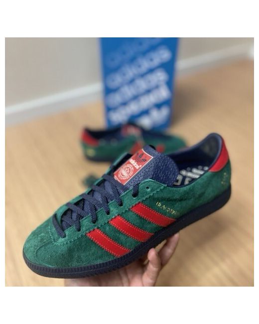 Elevate your sneaker game with these adidas Blackburn SPZL trainers. Designed for men with a UK shoe size of 10, these trainers boast a stylish green colour that is perfect for any casual outfit. The brand's iconic three stripes can be found on both sides of the shoe, showcasing your love for adidas. These trainers are not just stylish but also comfortable, making them perfect for everyday wear. The US shoe size of 10.5 and EU shoe size of 42 2/3 ensure a perfect fit for any foot size. The adidas SPZL product line promises quality and durability, making these trainers a great addition to your wardrobe.