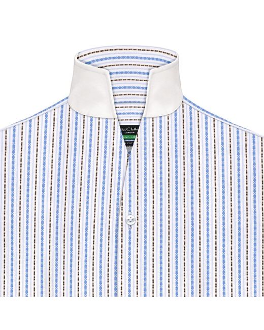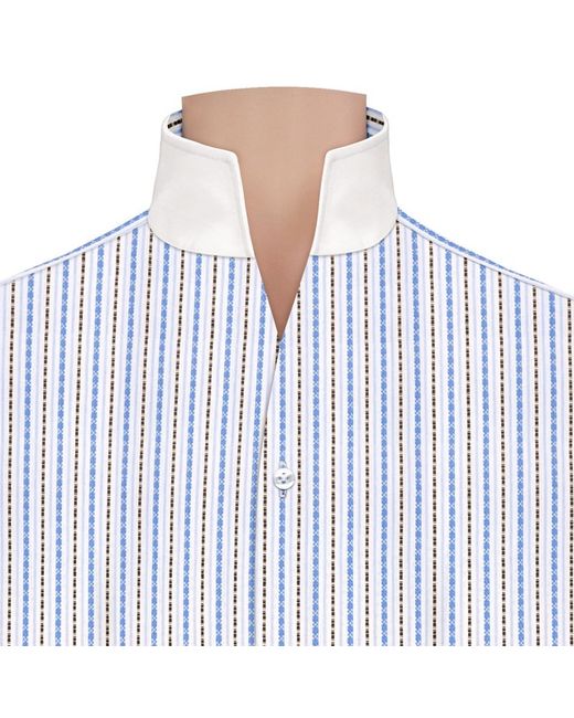 Stand Up / High Open V Neck / Buttonless Collar. >Pattern - Orange Floral Pinstripes. 3" (approx) high collar. # Savile Row/ British style collar. > Multi-layer German interlinings used under collar, cuffs & both front plackets.