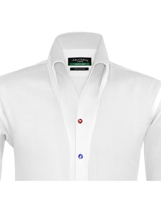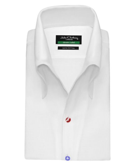John Clothier London High Open Button-Down Collar Shirts. High Open V Neck / Buttonless Collar. 3" (approx) high collar. # Savile Row/ British style collar. Long sleeves with 4" wide Barrel cuffs - 3 buttons.