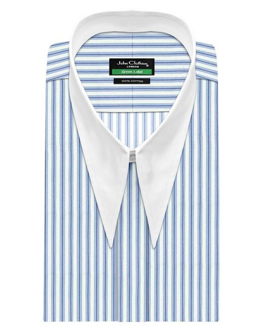 Blue-White Thin Stripes Hidden Placket Shirt. Multi-layer German interlinings used under collar, cuffs & both front plackets. Shirt images could be modified for better screen appearance. Actual fabric, color may differ marginally.