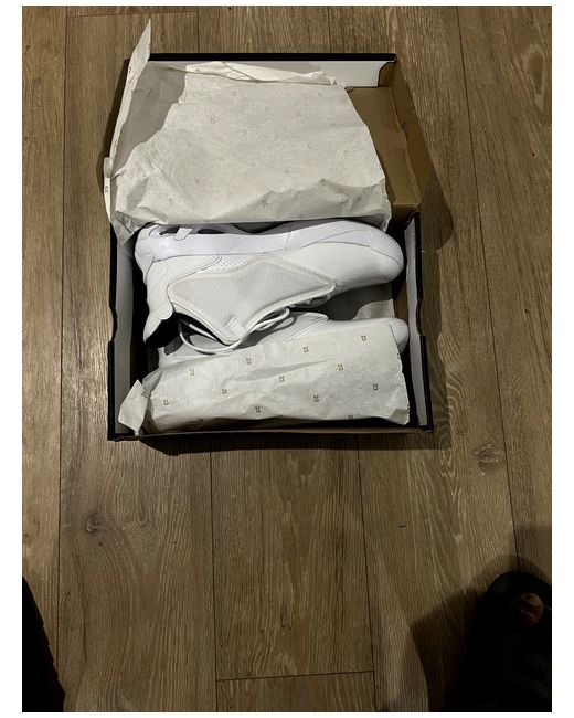 The Size 11 Jordan Max Aura 4 White is a stylish and sleek sneaker designed for men by the renowned brand Jordan. Made with high-quality leather, this trainer features a classic white colourway with a modern design. Perfect for everyday wear or casual outings, this shoe offers both comfort and style in one package. The Jordan Max Aura 4 is a must-have addition to any sneaker collection for those who appreciate quality and performance from their footwear. Bought for me by my partner and I haven't ever worn it cause it's not really my style.