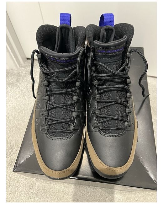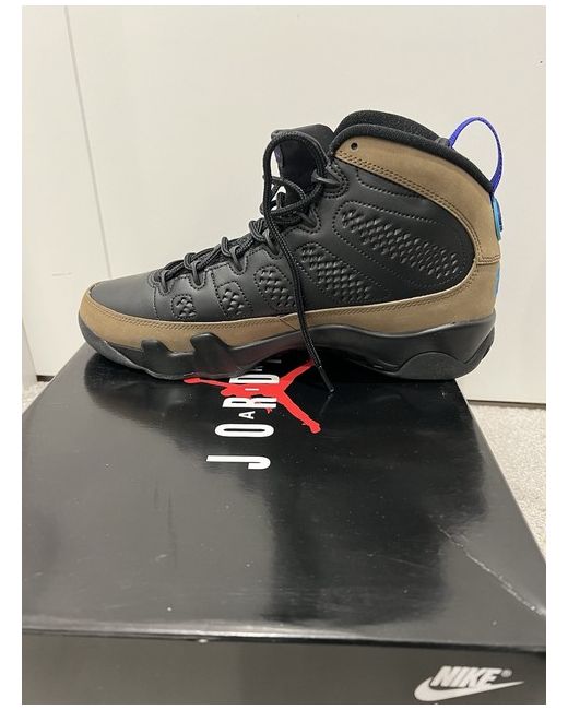 Introducing the Jordan Retro Olive 9, a sleek and stylish sneaker that is perfect for any fashion-forward man. This trainer boasts a classic retro design, complete with a brown colour scheme and Jordan branding, making it a must-have for any sneakerhead. Crafted with the finest materials, this Air Jordan Retro model is comfortable, durable, and long-lasting. It's perfect for everyday wear, whether you're hitting the streets or simply running errands. So why wait? Add the Jordan Retro Olive 9 to your shoe collection today and step out in style!