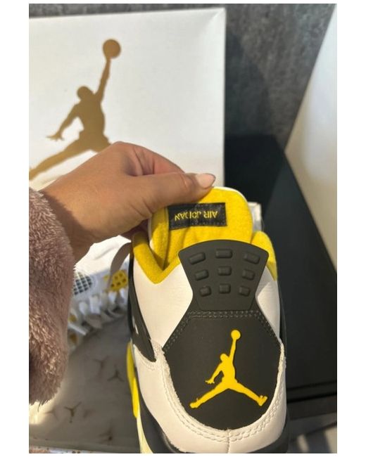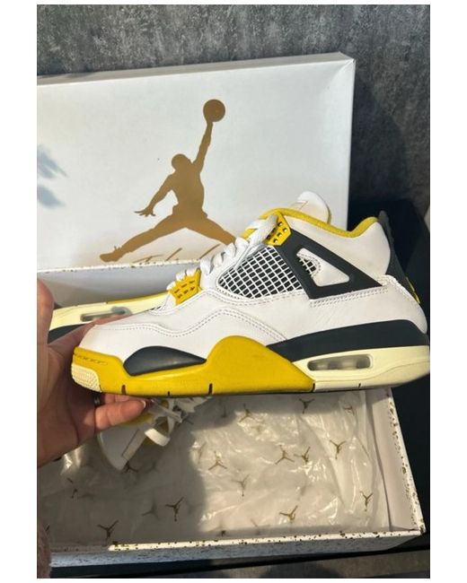 Jordan 4 Retro Yellow These have literally been worn once. My son had them as a present and they are too big. Authentic Jordan 4 Retro white and yellow