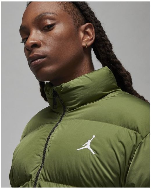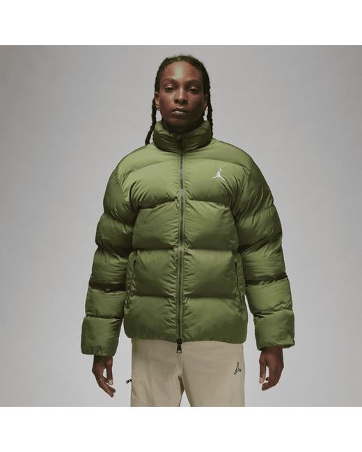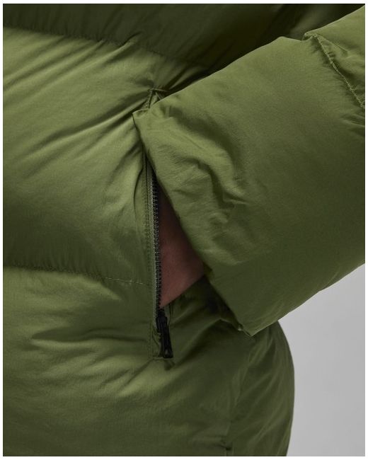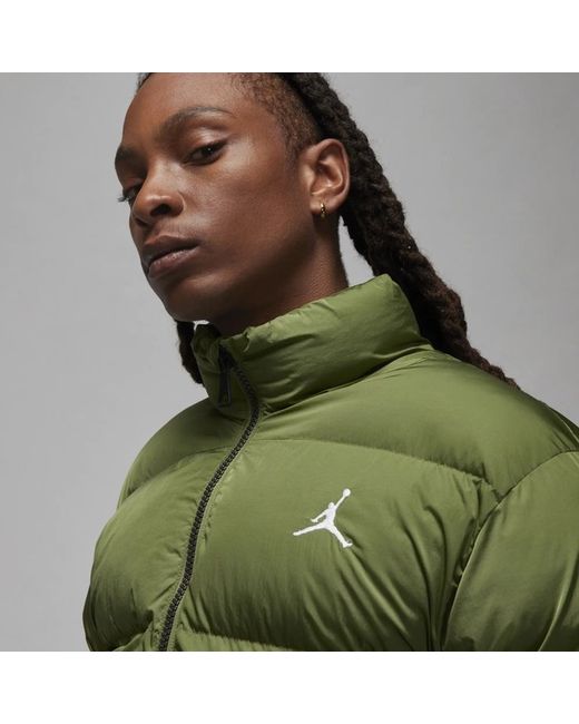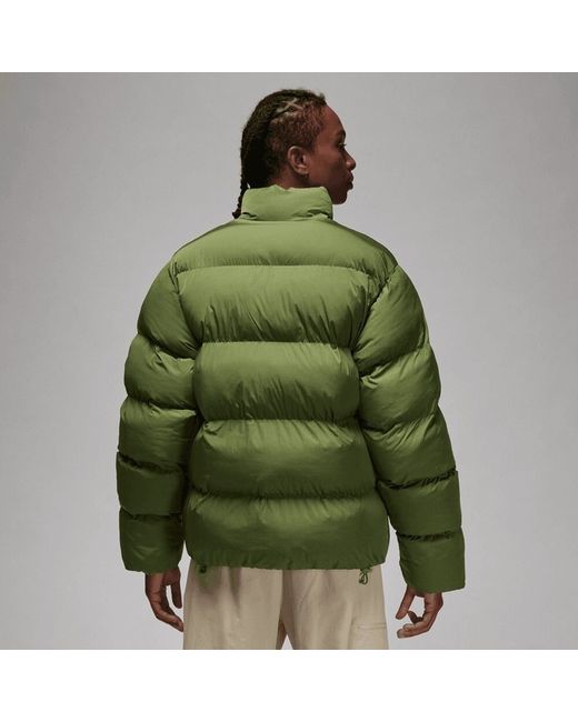 Introducing the Jordan Essentials Men's Poly Puffer Jacket in size L. This high-quality jacket is perfect for any stylish man looking for a warm and comfortable jacket. Made with durable polyester material, this jacket is built to last and withstand even the coldest weather. The vibrant green colour of this jacket is sure to turn heads and add a pop of colour to any outfit. The jacket features a classic puffer style and is designed with the Jordan brand in mind. This jacket is perfect for any man who wants to stay warm while still looking fashionable. Condition is New with tags