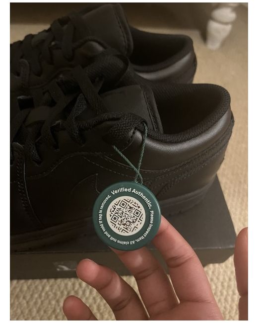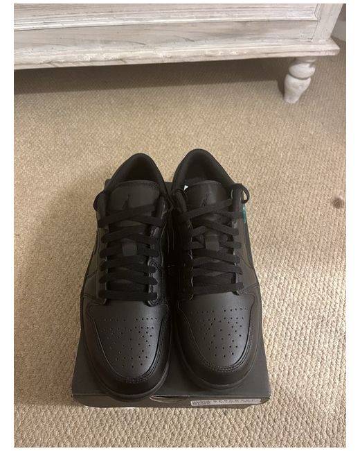 This is a new pair of Air Jordan 1 Low trainers in black, featuring a low-top design with lace-up closure. They are UK size 7.5, US size 8.5, and EU size 42. Made of leather in Vietnam, these sneakers are designed for basketball performance and casual wear. The model was released in 2022 under the Air Jordan product line.