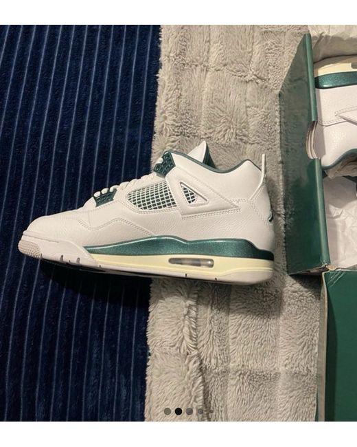 Step into style with the Jordan 4 Oxidised Green, a trainer that seamlessly blends comfort with a sleek design. These sneakers feature a distinctive green hue that makes a bold statement while complementing a variety of outfits. Crafted for the discerning man, the size UK 9 kicks are a versatile addition to any wardrobe. With its iconic Air Jordan 4 model lineage, this pair promises a blend of legacy and performance. The sneaker's durable construction and supportive fit are perfect for both everyday wear and athletic activities. Don't miss the chance to own a piece of the Jordan brand's storied heritage in these standout trainers.