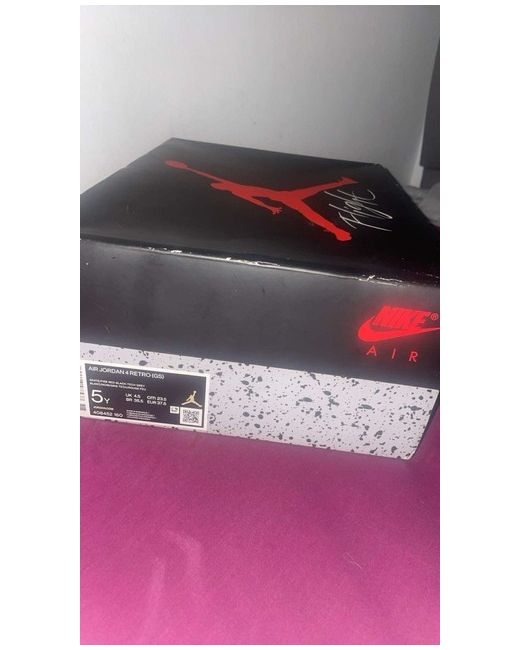 This is a pair of Air Jordan 4 Fire Red trainers in UK size 4.5.The brand is Jordan, and the model is Air Jordan 4. Willing to negotiate price
