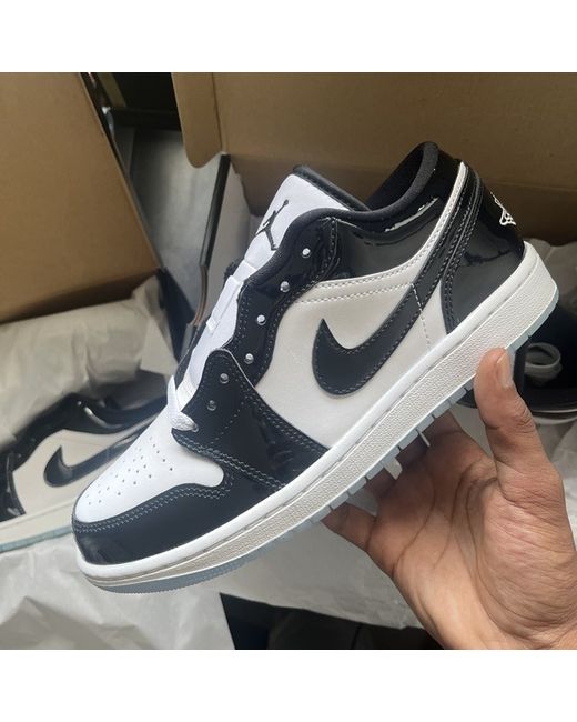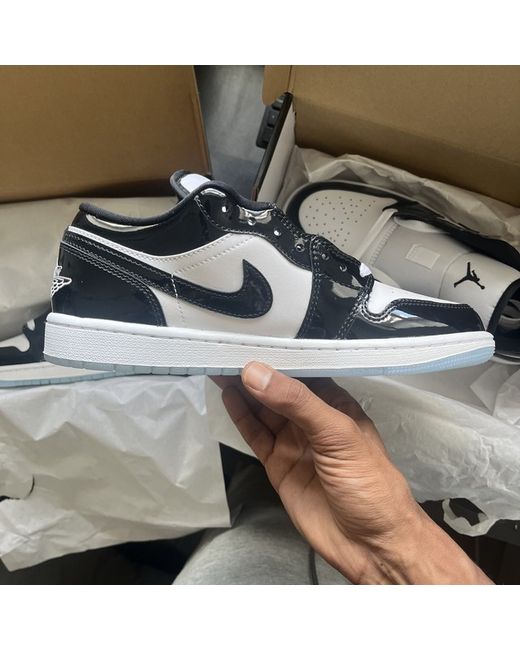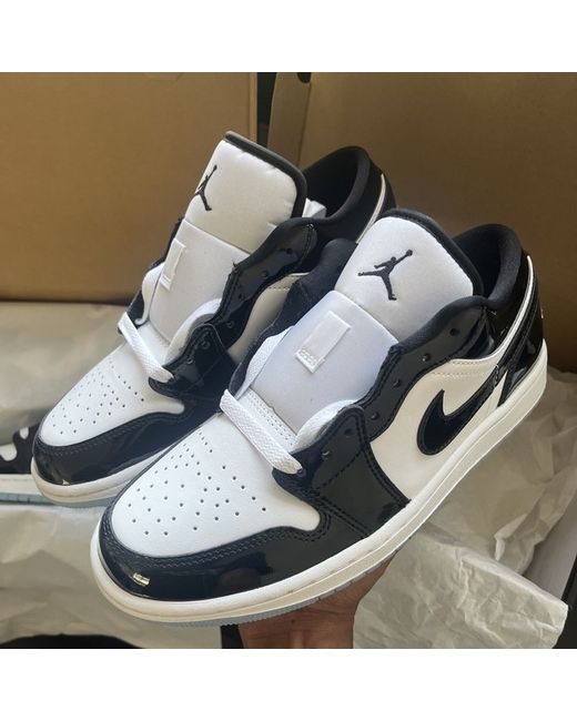 Elevate your sneaker game with these stylish and iconic Air Jordan 1 Low SE Concord trainers. Designed for both men and women, these unisex trainers feature a low top shoe shaft style and come in a sleek black colourway with a chrome sole. Crafted with a comfortable fit, these Air Jordan 1 Low SE trainers have a US shoe size of 7, UK shoe size of 6, and EU shoe size of 40. With a product line that speaks for itself, these sneakers are perfect for any occasion and are sure to turn heads..