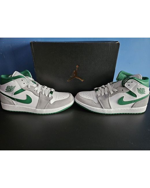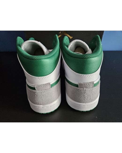 The Jordan 1 Mid Grey Pine Green in size 6.5 UK is a stylish and sporty sneaker designed for men. Made with a leather upper and featuring the iconic Jordan branding, this mid-top trainer is perfect for casual wear or sports activities. The grey colourway with hints of pine green adds a trendy touch to any outfit, making it a versatile addition to any wardrobe.
