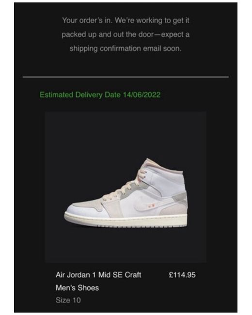Jordan 1 Mid Craft ‘Inside Out’. Grey, white and sail colours. Clean pair of Jordan’s to show off and can go with all outfits. Only worn once but can see by images can’t even tell, in Brand new condition and always wear crease protectors so no creases either. Comes with the extra pair of grey laces. Doesn’t come with box.