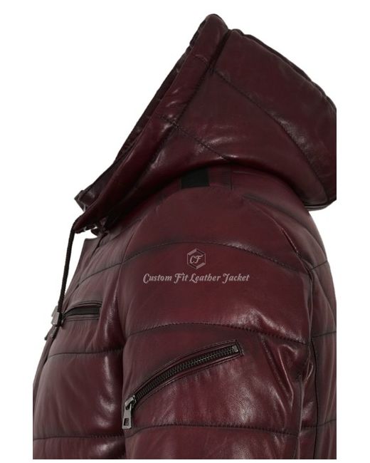 Detachable Puffer Hood- A stylish and warm leather jacket for many outdoor casual and sports activities. Rock star Motorcycle style leather jacket. Light weight and very comfortable. Made from soft lambskin leather.