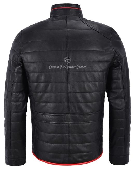 Real Lambskin Napa Leather Jacket. Great fitting Puffer Jacket. 2 Outer Pockets. Very durable and well made. It takes on the character of the wearer. Natural leather is breathable so you wont feel sticky and suffocated as you do with PVC/Synthetic imitation.