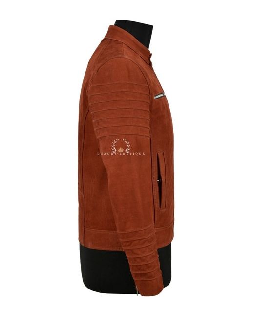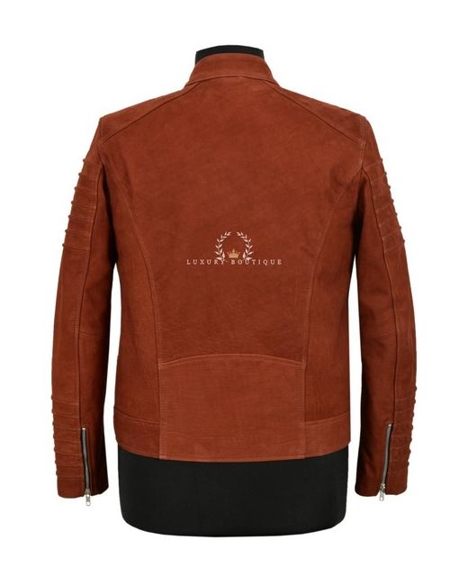 Men's Classic Leather Jacket Chestnut Nubuck ZIp Cuffs Racer