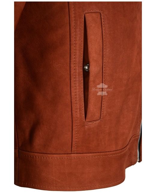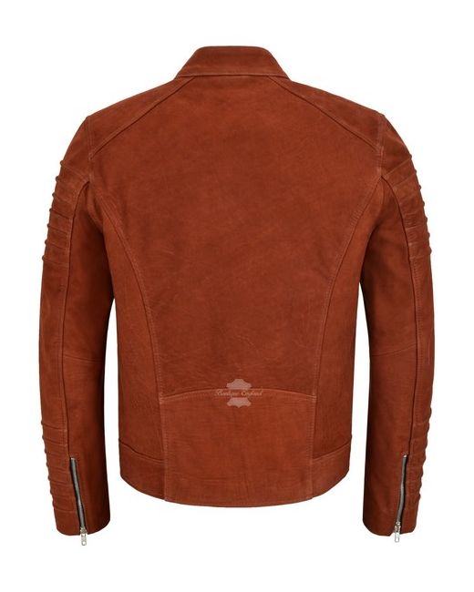 Men's Classic Leather Jacket Chestnut Nubuck ZIp Cuffs Racer 7515
