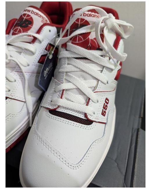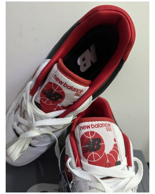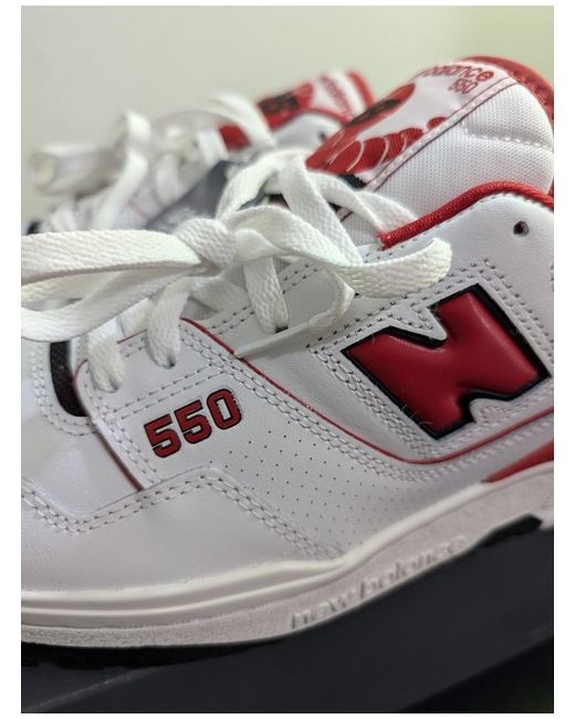 These are New Balance 550 sneakers in white, designed for men in UK shoe size 11.5. They are a stylish trainer model from New Balance.