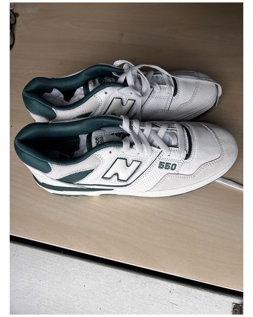 Introducing the stylish and trendy New Balance 550 in a classic white and green colourway. The size of this trainer is 9.5 UK, 10 US, and 44 EU.