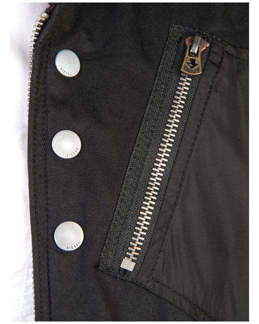DIESEL JRIQUA JACKET. Composition:100% Cotton. Cloth, Techno fabric, Elasticised cuffs, Four pockets, One internal jacket pocket, Zip closure, Lined interior, Appliqué, Embroidered logo.