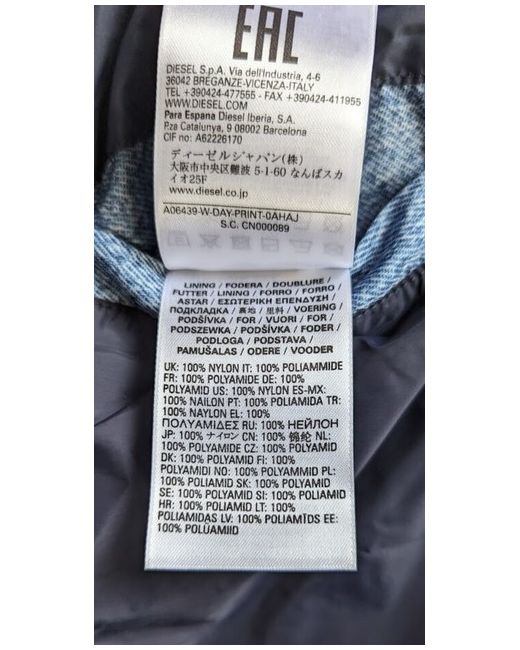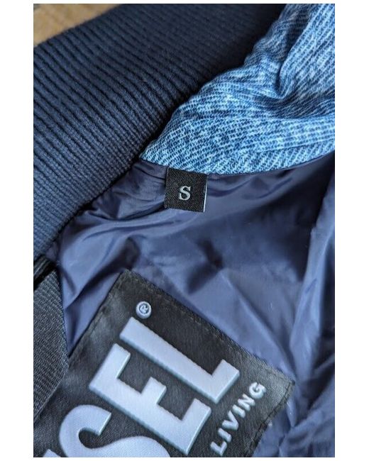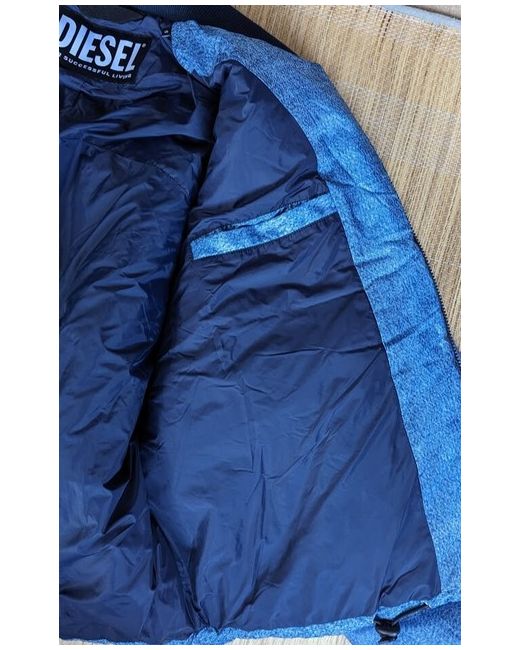 This Diesel jacket in size S is a blue puffer style with a relaxed fit. Made of polyester with nylon lining, it features a zip closure and is insulated for warmth.