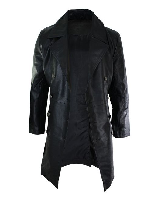 Men's Black Long 3/4 Real Leather German Generals Jacket Punk Rock Emo