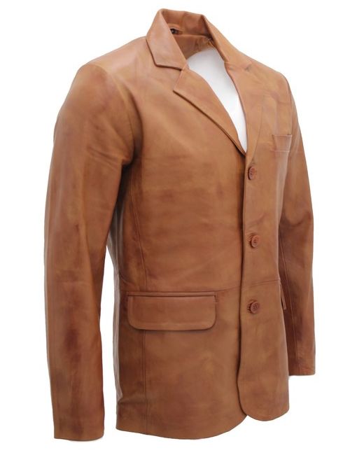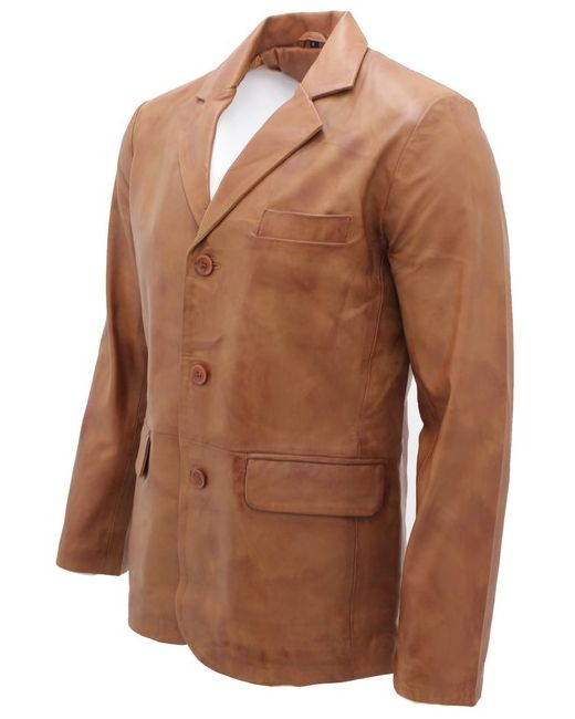 Lend a sleek touch to your wardrobe with this trendy leather blazer finished in soft wax Nappa leather. This elegant jacket is complimented with a three button single breasted block making this the ideal jacket to wear to complete both a smart and casual look. For added practicality this jacket features two external patch pockets. ---Tailored Fit ---Shirt Style Collar ---Single Breasted Design ---Genuine 100% Leather ---Three Button Fastening ---3 External Pockets ---Wax Finish.