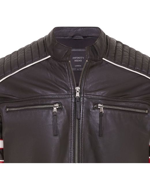 Men's Black Quilted Biker Leather Jacket Racing