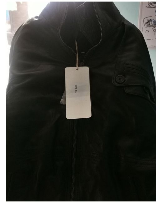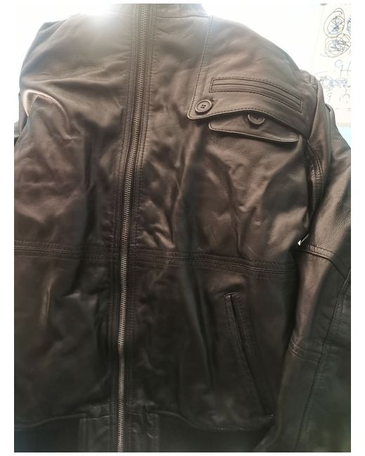 Black.Size XL(42-44" chest). Inner Rib Knit Collar with Button Fastening. Rib Knit Hem and Cuffs. Nappa Leather.