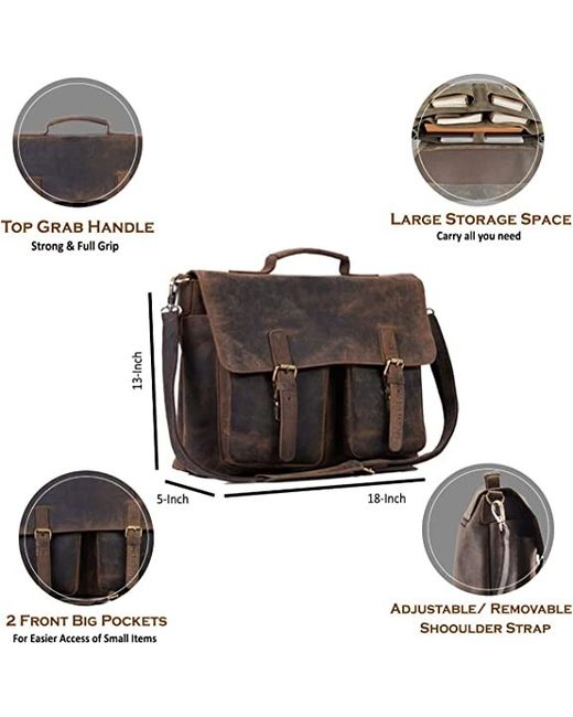 Leather messenger bag for men handmade full grain distressed buffalo leather -16 inch laptop bag with padded compartment pockets and adjustable strap.. The average leather bag is constructed using flimsy or artificial leather .our messenger bags are constructed by skilled artisans in pakistan using high quality genuine leather .outwe meterial leather ,inner polyester ,closure megnetic with golden buckles.