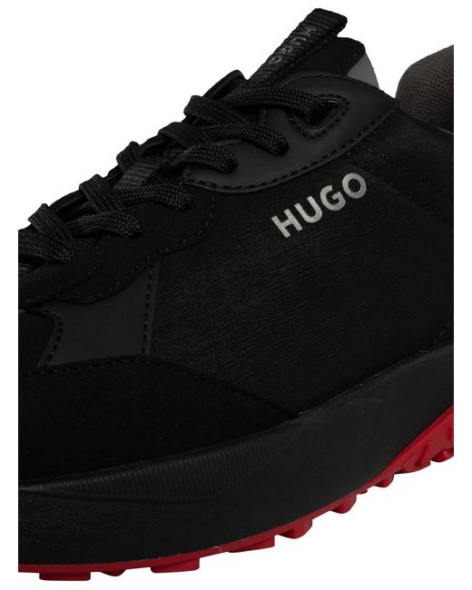 Built with a cushioned collar, these trainers provide optimal ankle support, ensuring comfort during long hours of wear. Whether worn with activewear or casual ensembles, the HUGO Kane Runner Trainers provide a stylish and functional footwear choice.