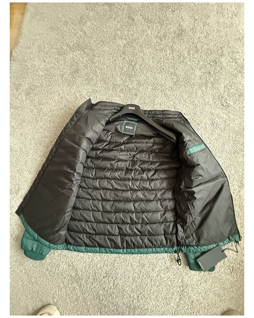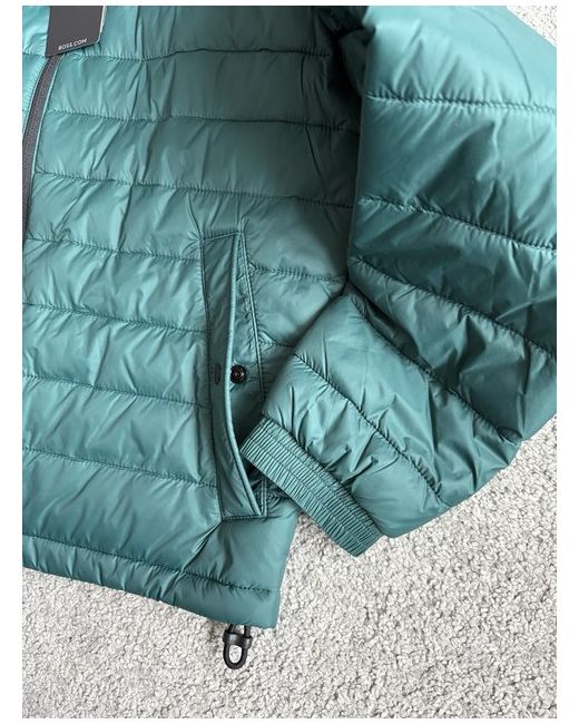Crafted for the modern man, this Hugo Boss bomber jacket brings together classic style and contemporary design. In a vibrant green hue, it's made from durable polyester, ensuring both comfort and longevity.