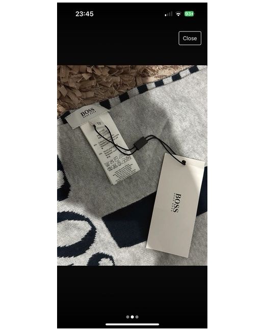 Elevate your style with this stunning grey Hugo Boss scarf. Made from high-quality materials,The design ensures that it can be worn with any outfit, making it a versatile addition to your wardrobe. The scarf's elegant design is perfect for any occasion, whether you're dressing up for a formal event or keeping it casual on a sunny day. With its subtle branding, this scarf is sure to turn heads and make a statement. Don't miss out on the chance to own this must-have accessory. Size says 12.