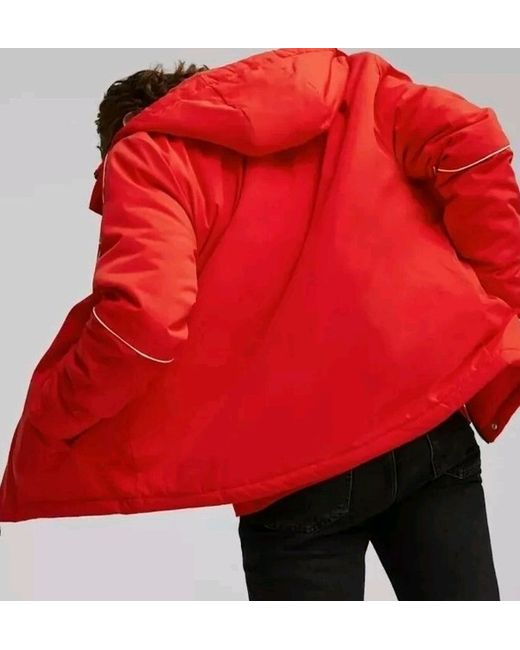 PUMA Cat Logo on front. FILLING: 100% polyester. SHELL: 100% polyester. rainCELL: Technology designed to keep you protected from the rain and dry during exercise. Material Information. Use only mild detergent.