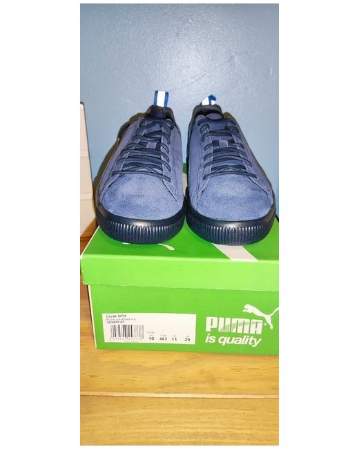 Elevate your sneaker game with these Puma Clyde OffTheHook trainers in UK size 10. The iconic design features a comfortable fit and stylish details that make them perfect for any casual occasion. Made by the renowned brand Puma, these trainers are sure to impress any sneaker enthusiast. The model is a classic choice for men who want to add a touch of style to their wardrobe. The sneakers are perfect for everyday wear and can be paired with any outfit. Don't miss out on the chance to own these high-quality trainers from Puma.