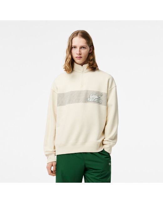Men's Beige Sweatshirt Quarter Zip Pullover With Logo