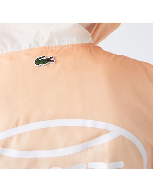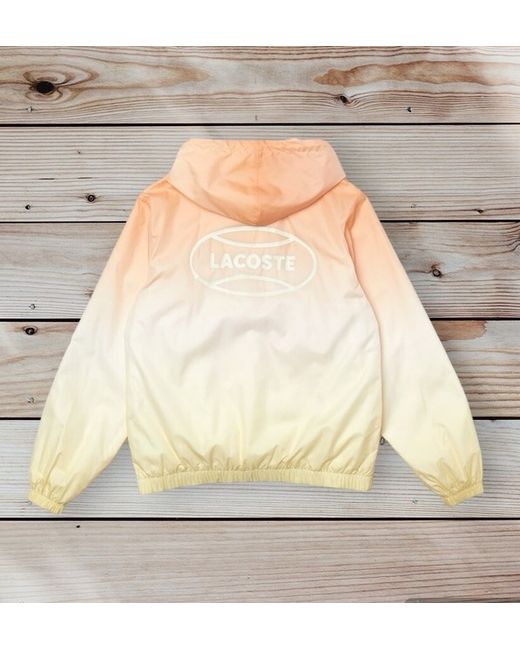 A gradated sunset print enlivens this pullover windbreaker. Comfortable elasticized finishes complete this essential, which may be entirely folded into its ventral pocket. Half-zip fastening and adjustable drawstring hood.
